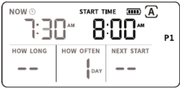 1. Press the ‘+’ or ‘-‘ button to set the watering duration(HOW LONG).