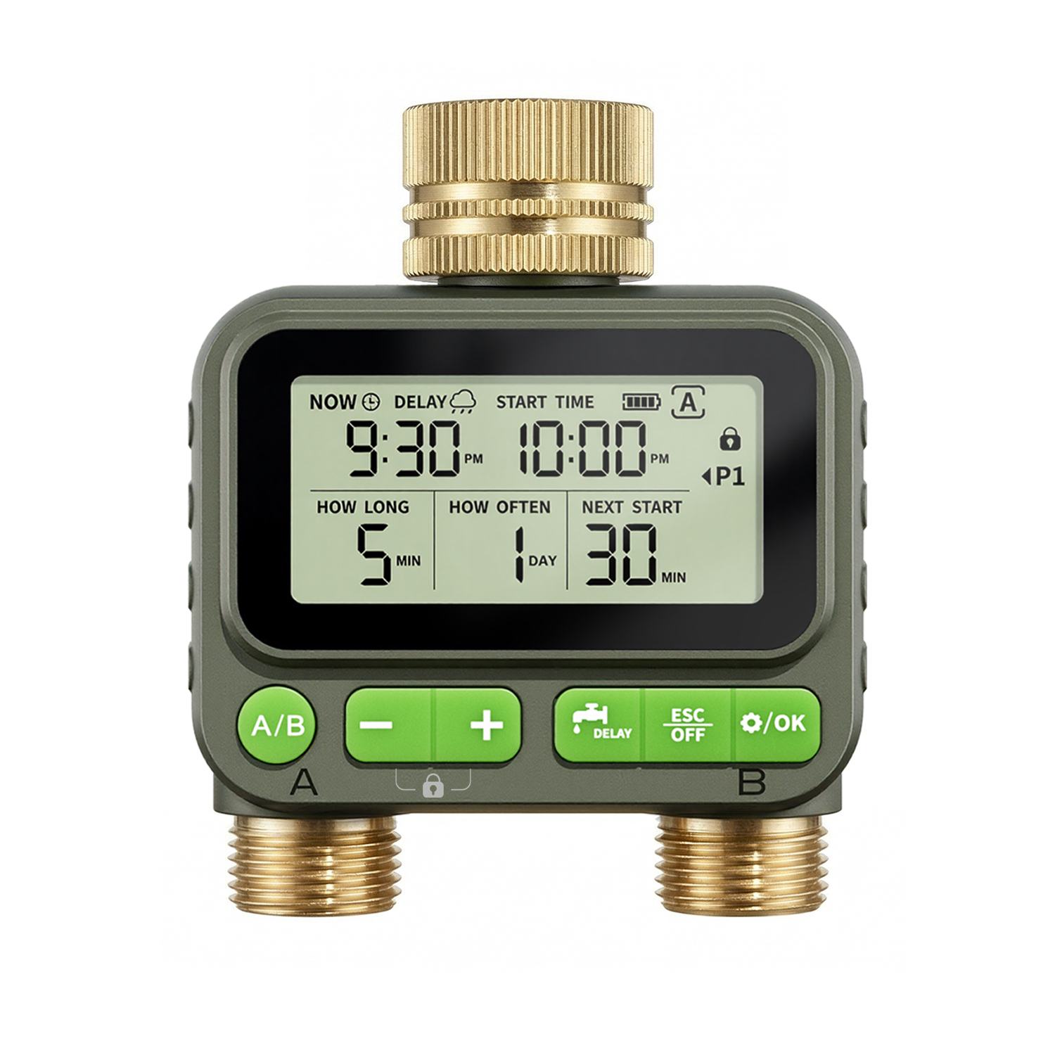 Short press: Add/subtract time, switch watering plan, switch hour mode.